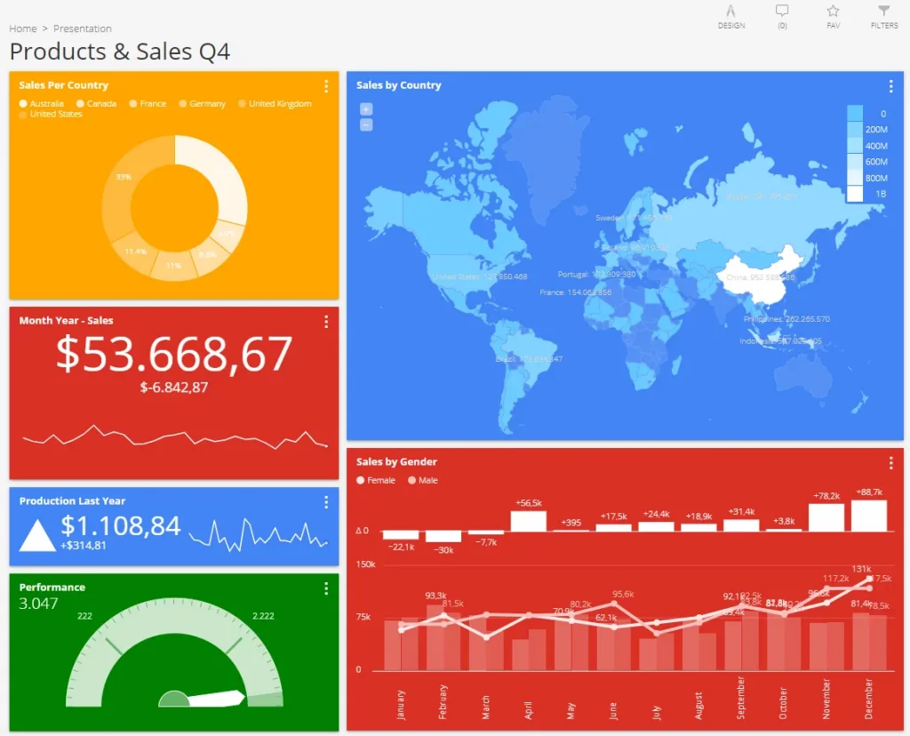 The fastest way to create beautiful custom analytic reports and dashboards based on your requirements while using your OLAP, SQL, and CSV data sources, to share them and collaborate with other users.